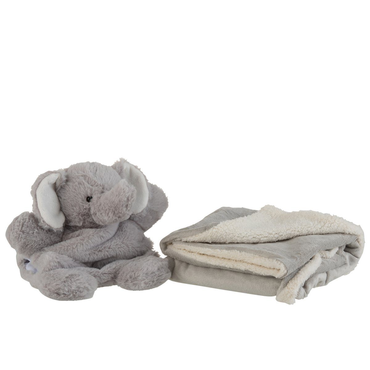 J-Line Plaid olifant – babydekentje – pluche – grijs – 24 x 23 cm